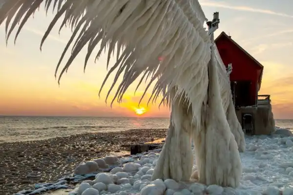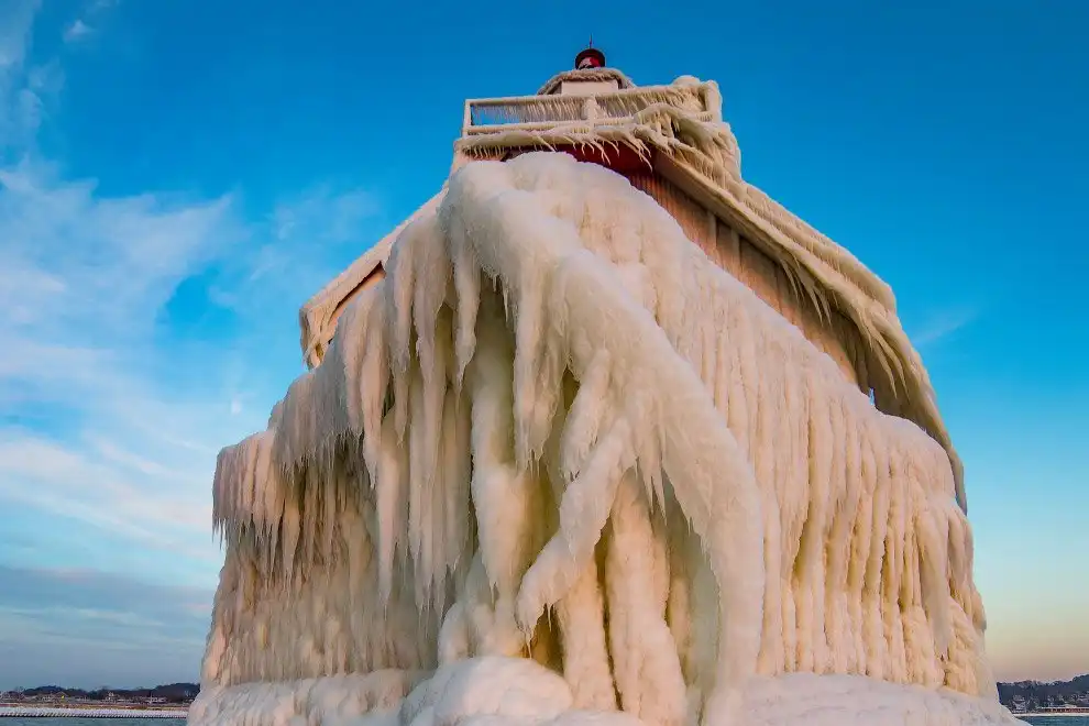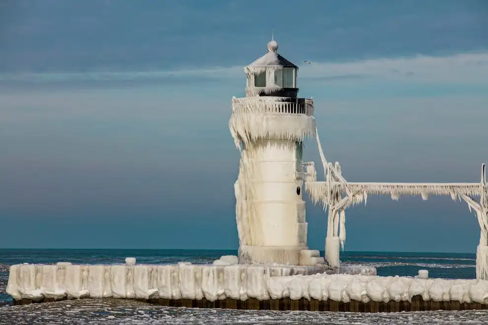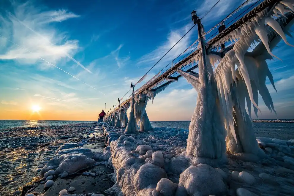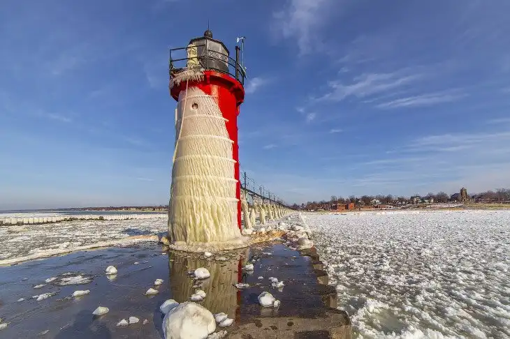 Озеро Мичиган — это единственное из Великих озёр, полностью находящееся на территории США. Одна из достопримечательностей озера Мичиган — маяки, которые зимой превращаются в настоящие ледяные шедевры.