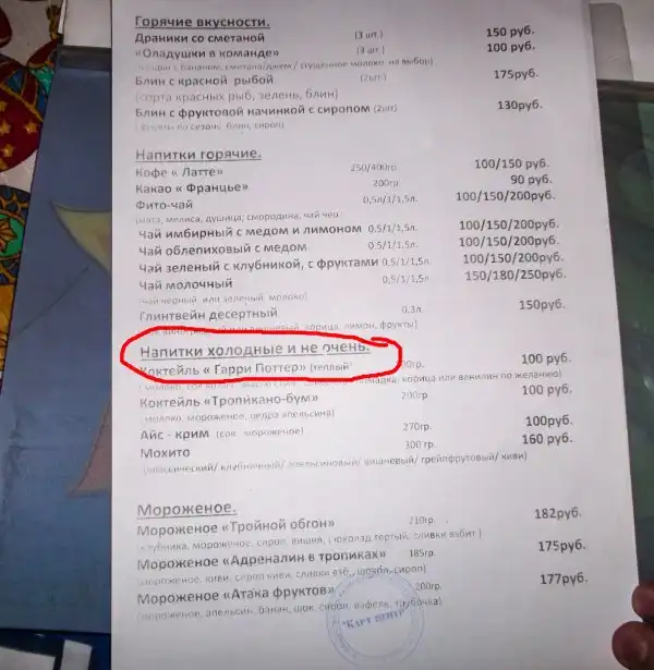 Листая меню в кафе, ненароком...