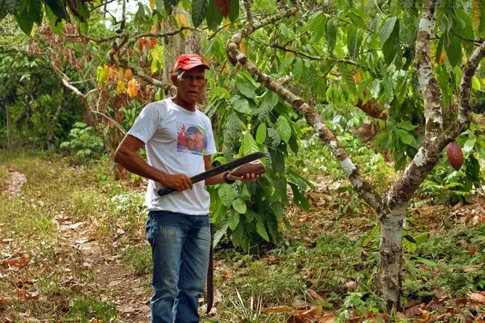 Частыми соседями для деревьев какао здесь становятся: банановая пальма, джекфрут, дерево пау-бразил и др.
