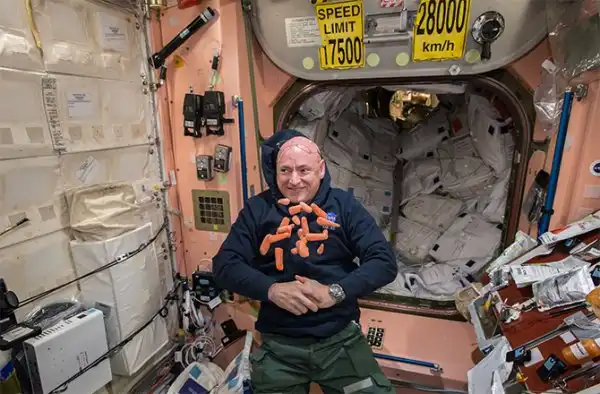 По словам Келли, кожа верхней части его стопы стала похожа на крокодилью. Он пользуется верхней частью стопы, чтобы цепляться за специальный "поручень" для ног во время перемещения по космической станции.