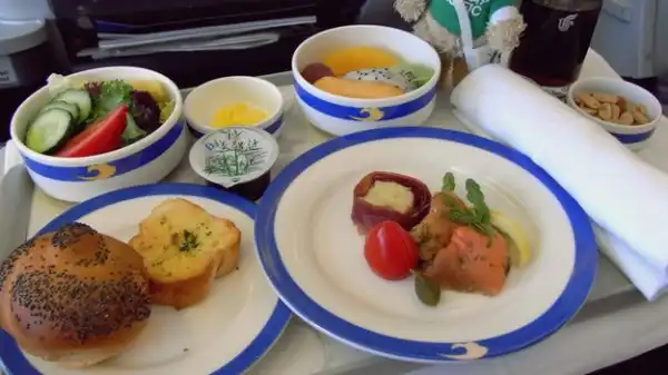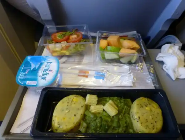 Нормально питаться в самолёте можно если заказывать спецпитание, оно обычно гораздо выше качеством. Так же оно идёт в отдельной упаковке, обычно из плотного картона, при этом коробка чуть больше столика и можно шикарно разложиться в экономе. Стандартные наборы как раз обычно в более скромной упаковке. Отличное кошерное питание, халяльное тоже ничо, но если на первое соседи будут посматривать с улыбкой, то на второе с явным подозрением и настороженностью. Так же диетические варианты можно посмотреть, например встречается без растительного белка, то есть нормальная безсоевая хрень, правда можно без хлеба остаться. Дополнительный бонус в том, что это питание разносят обычно отдельно перед раздачей массовых наборов, поэтому не нужно сидеть и выглядывать в проход не кончается ли там курица.