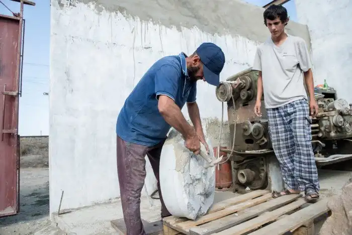 Шамо — мастер из Унцукуля. Когда-то он трудился на местной фабрике деревянных изделий с металлической насечкой, теперь — делает мельницы. Благо между двумя производствами оказалось неожиданно много общего: и металл, и дерево, и токарные станки, правда, их приходится переделывать для работы с камнем. Даже заготовки для жерновов Джамал и Шамо привозят в Кизилюрт из родных районов, хотя это далеко и дорого. Они уверены, что чем дальше глушь и чем меньше в ней асфальтированных трасс, тем лучше камни — от взрывов при дорожных работах в скалах возникают мелкие трещины, которые потом могут некстати проявиться.