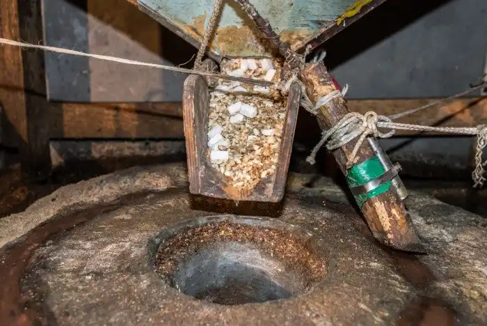 Мельницами в Дагестане пользовались всем миром для самых разных целей. Благо на таком универсальном агрегате можно было молоть и разные виды урбеча, и муку, и толокно — еще недавно популярное по всей России, а ныне почти забытое. В пору сбора абрикосов сельчане выстраивались в длинные очереди, чтобы смолоть ядра косточек вперемешку с колотым сахаром.