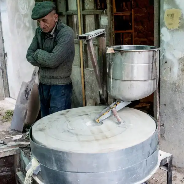 Когда-то горцы искали подходящий камень для мельницы в речках и оврагах возле своих селений. Месяцами прямо на месте вытесывали из него жернов. А потом сообща, с родственниками и соседями, тащили в деревню каменный круг весом в несколько центнеров. Говорят, иногда он срывался и увечил людей. Сейчас камни везут грузовиками и режут алмазами, а затем долго обтачивают и шлифуют. Это непросто — плохо сбалансированный жернов будет прыгать и быстро поломается. А потому крохотная фабрика выпускает не больше одной-двух мельниц в месяц.