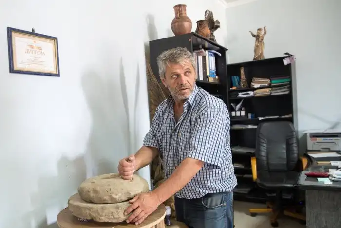 — Одна глыба у нас заняла целый «Камаз». Ее привезли и расслоили алмазным канатом — семь жерновов вышло. Тяжелая работа, но она того стоит. Если пробуешь продукт прямо из мельницы и знаешь, что это — свое, прошедшее через камень и дерево, ты его совсем по-другому ощущаешь.
