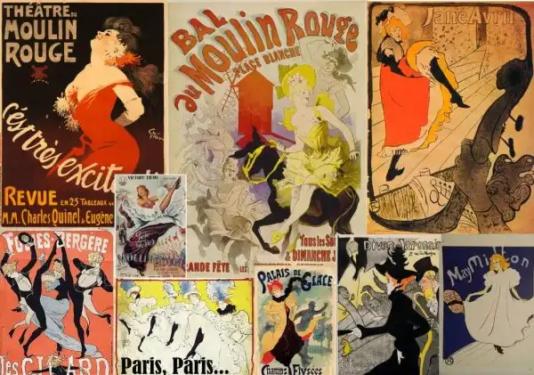 Самые известные афиши «Мулен Руж» принадлежат перу одного из завсегдатаев заведения, художнику Анри де Тулуз-Лотреку. Проводящий время в шумных компаниях и в объятиях прекрасных танцовщиц, он запечатлел их на своих картинах. Благодаря его работам можно воочию представить историю «Мулен Руж».