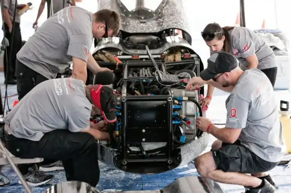 За каждую из осей отвечает свой мотор. Команда студентов продолжает развивать силовой агрегат, особенно контроллер-инвертор, чтобы достичь мощности в 3000 лошадиных сил.