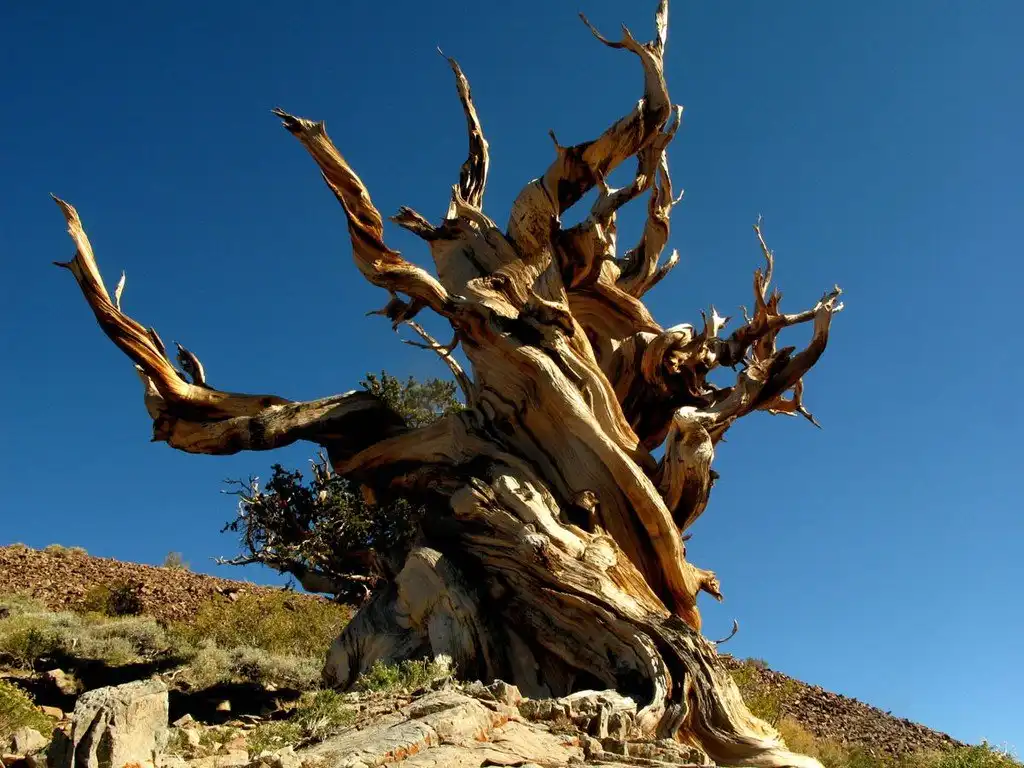 Сосна остистая межгорная относительно небольшое хвойное дерево, зачастую изгибающееся под странными углами. Непрезентабельная внешность не играет никакой роли, учитывая способность этих сосен жить тысячелетия. Самому старому из обнаруженных деревьев, названному Мафусаилом, 5062 года - фактически оно ровесник многих наших старейших цивилизаций.