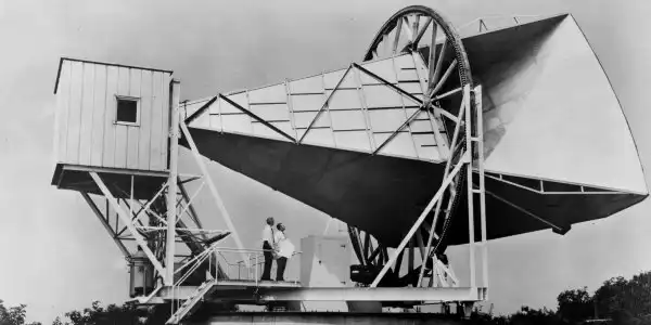 Ученые Веll углубляться в эту тему не стали, однако 30 лет спустя радиоинженеры переключились на спутниковую связь и сначала решили поэкспериментировать с отражением микроволновых сигналов (это излучение с длиной волны примерно от сантиметра до метра) от метеошаров. Чтобы ловить отраженный сигнал, построили гигантскую антенну; с инженерами сумели договориться, что, когда антенна выполнит свою прямую задачу, ее смогут использовать для астрономических наблюдений. Заинтересованной стороной были два физика, Арно Пензиас и Роберт Вильсон. Вычислив интенсивность фонового шума от всех известных источников в микроволновом диапазоне, Пензиас и Вильсон, к своему удивлению, обнаружили, что на самом деле антенна "шумит" куда сильней. Температура загадочного фона составляла примерно 2,7 градуса Кельвина. Физики испробовали все известные им способы устранить шум. Сначала выгнали голубей, устроивших внутри антенны гнездо, а также удалили оставшийся после них "белый диэлектрический осадок". Это не решило проблемы, а других источников шума не нашли: Нью-Йорк, расположенный поблизости, был ни при чем, равно как и эхо недавних атомных испытаний.