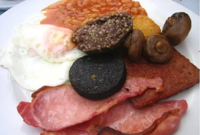 Почему такое место в нашем рейтинге: всё очень похоже на традиционный английский завтрак, за исключением ирландского чая, а также белой и чёрной кровяной колбасы.