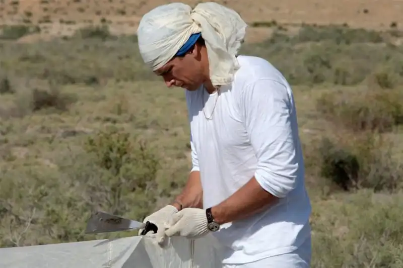 На этом фото 1997 года российский космонавт Валерий Корзун использует топор для разделки мяса, чтобы нарезать колбасу.