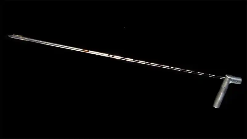 Это использовалось для проведения грубых измерений твердости или устойчивости к проникновению лунного грунта. В качестве колюще-режущего оружия ближнего боя его также можно было использовать, несомненно.