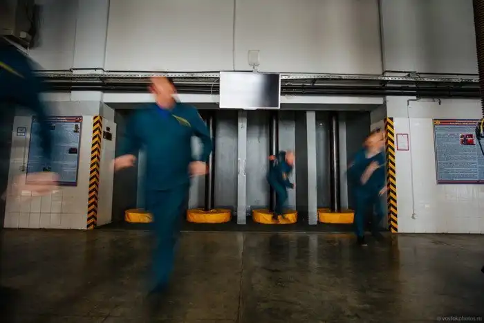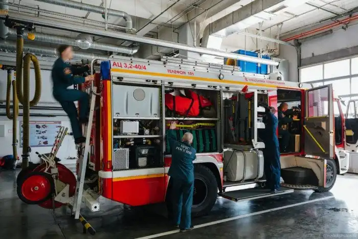 Когда звучит сигнал тревоги, до этого спокойные и размеренные ребята, словно спринтеры срываются со своих мест и как в кино спускаются по трубе в гараж, где со скоростью ветра облачаются в боевую одежду спасателя.