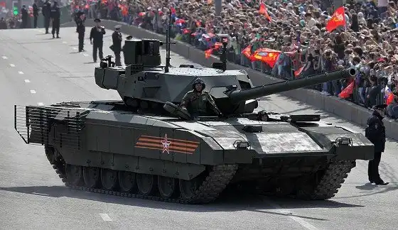 Т-14 построен на базе универсальной гусеничной платформы "Армата", как и другие машины на этой платформе был представлен в 2015 году. Он используется как машина разведки для указания целей и корректировки огня корректировки огня САУ, ЗРК и танков Т-90. Главной особенностью Т-14 является новое поколение комплекса активной защиты "Афганит", который способен перехватывать противотанковые снаряды, ослеплять управляемые ракеты при помощи дымометаллических завес и выжигать электронику самонаведения при помощи электромагнитного оружия.