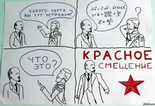 Когда изучаемая звезда удаляется от нас, длина волны испускаемого света растягивается, из-за чего весь спектр сдвигается в красную сторону. Если элемент удаляется и излучает красный свет, то мы его регистрируем уже в инфракрасном диапазоне, если зеленый, то в желтом, если синий, то в зеленом, и т.д.