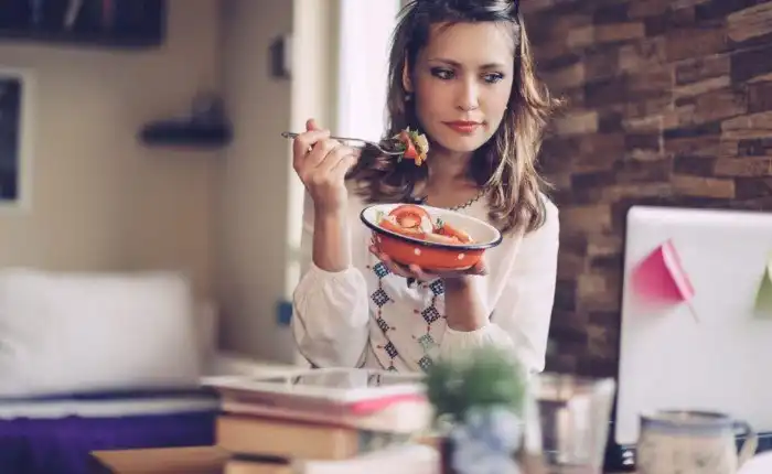 Недостаток воды в организме многие люди ошибочно принимают за чувство голода. Возьмите за правило иметь на рабочем столе бутылку чистой воды. Это вполне может спасти вас от переедания.
