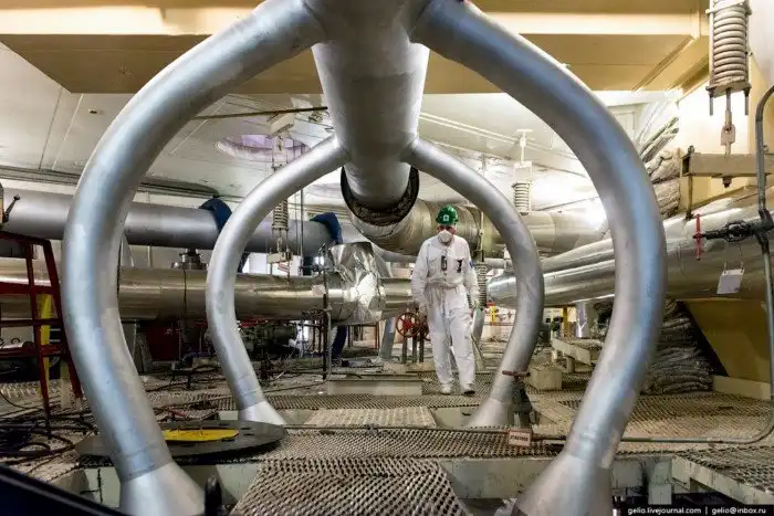 Нагретая в реакторе вода направляется по четырём трубопроводам в парогенераторы.