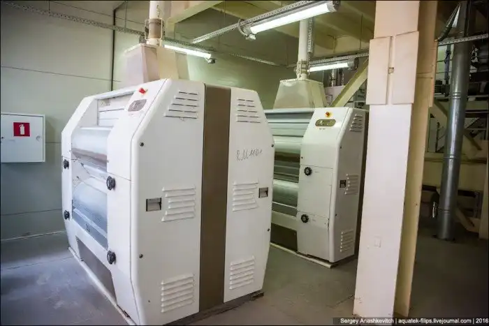Пшеницу привозят в специальных зерновозах и помещают в высокие бочки-элеваторы, откуда она далее поступает на производство.