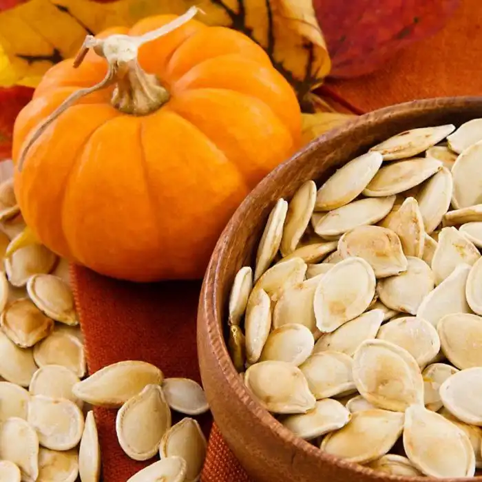 Семена тыквы богаты минералами, включая цинк, серу, а также витамин Е и жирные кислоты омега-3. Этот продукт — хороший источник антиоксидантов. Поедая их в сыром виде (нежные жиры под действием тепла разрушаются), вы можете постоянно осуществлять надежную профилактику старения, а также борьбу со шрамами после прыщей.