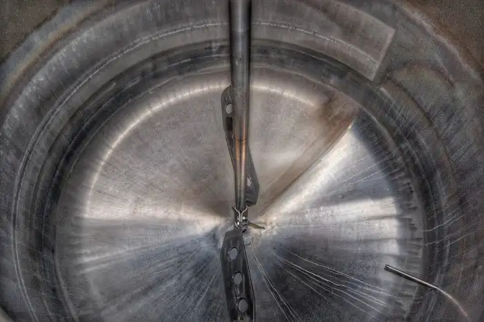 Заторно-сусловарочный котёл. Вид сверху. Здесь затирается солод, а после фильтрации затора в фильтр-чане в этом же котле кипятится сусло.