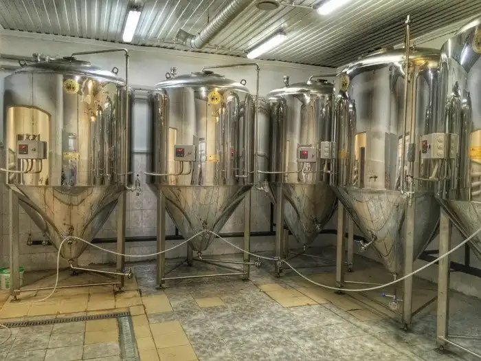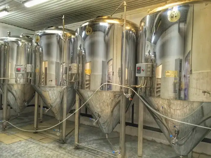 В одном из танков идёт активное брожение, в других — активное брожение закончилось и пиво выдерживается.