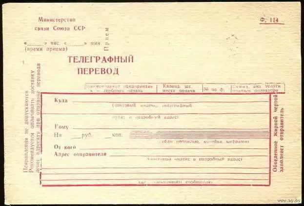 В Советском союзе денежные переводы были одной из важных услуг телеграфной связи общего пользования.