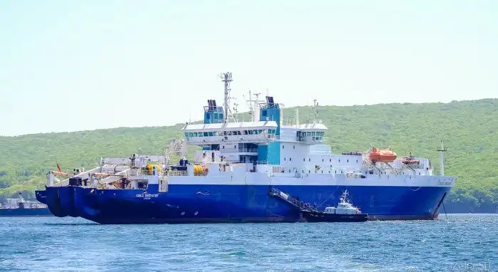Судно стояло возле острова Русский, я даже думал, что можно подойти к нему на каяке, но, увы, погода не позволила.