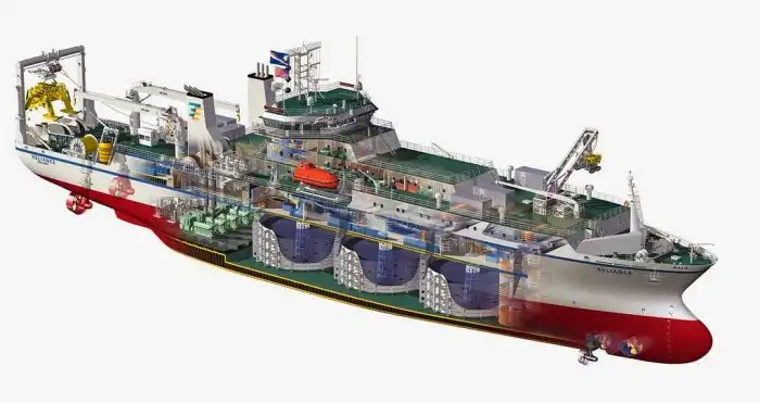 Имеется 3 трюма для кабеля - танка, их вместимости хватит проложить кабель на пол земного шара.