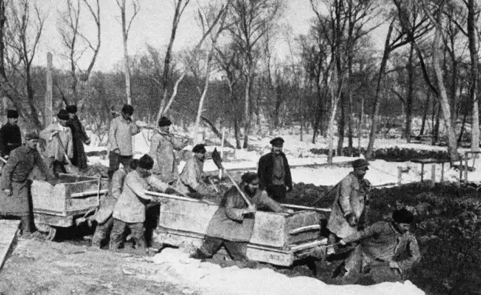Около 90 тысяч рабочих и строителей были привезены на стройку со всей России. Не все прибыли добровольно: иногда у людей просто не оставалось выбора. Большинство рабочих прекрасно осознавали свое опасное положение: холод, разбойники, дикие звери — шансы вернуться со стройки Транссиба домой были 50/50