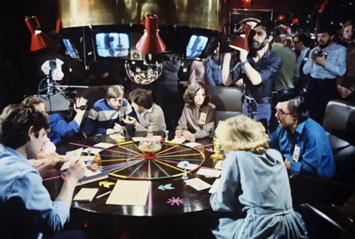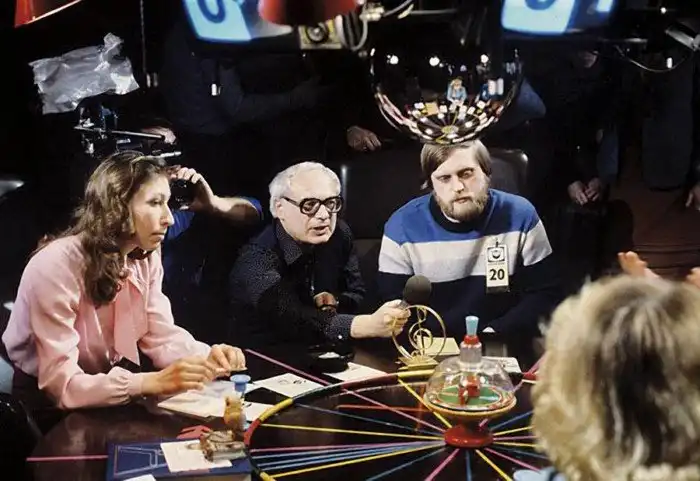 1985 год. Знатоки и автор сценария, режиссер и ведущий передачи Владимир Ворошилов обсуждают итоги игры. © РИА Новости, Г. Казаринов