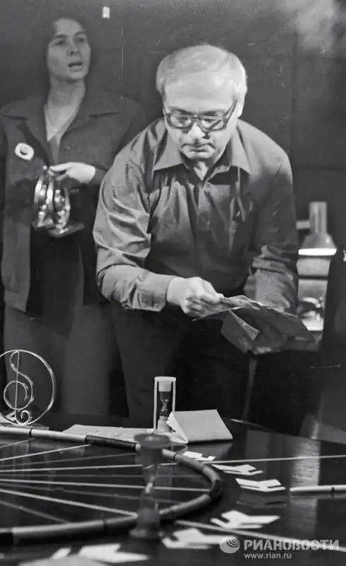 1985 год. Режиссёр и ведущий телевизионного клуба “Что? Где? Когда?” Владимир Ворошилов готовит очередную игру. © РИА Новости, Г. Казаринов