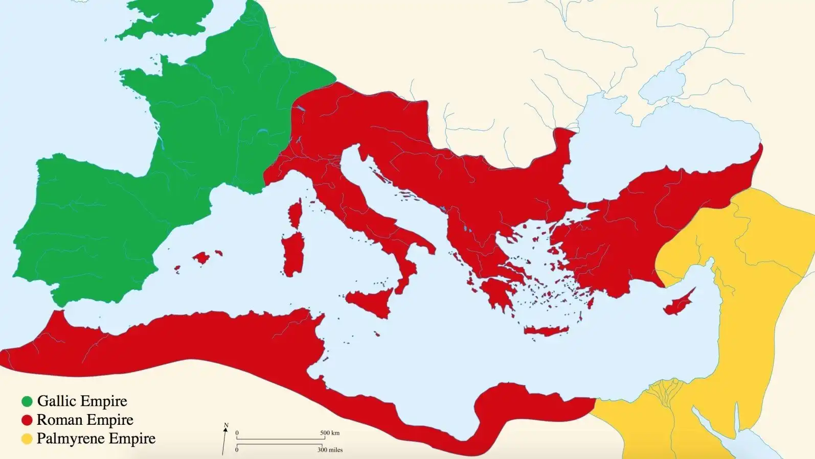 Галльская империя — сепаратистское образование, возникшее на территории римской Галлии во время кризиса III века. Империя просуществовала с 260-го по 274 гг. и включала в себя территории провинций Галлии, Иберии, Британии и Германии. Основной задачей галльских императоров была защита рейнской границы от набегов германских племён. Внутриполитическая ситуация в сепаратистской империи мало отличалась от общей атмосферы кризиса, в котором в то время пребывал весь римский мир. Галльское государство часто сотрясали мятежи, ни один из императоров не умер своей смертью. В 274 году, спустя 14 лет существования, император Тетрик после предварительных переговоров сдался императору Аврелиану, бросив свои войска. Сопротивление галльских войск, оставшихся без централизованного руководства, было подавлено и западные провинции вновь вошли в состав Римской империи.