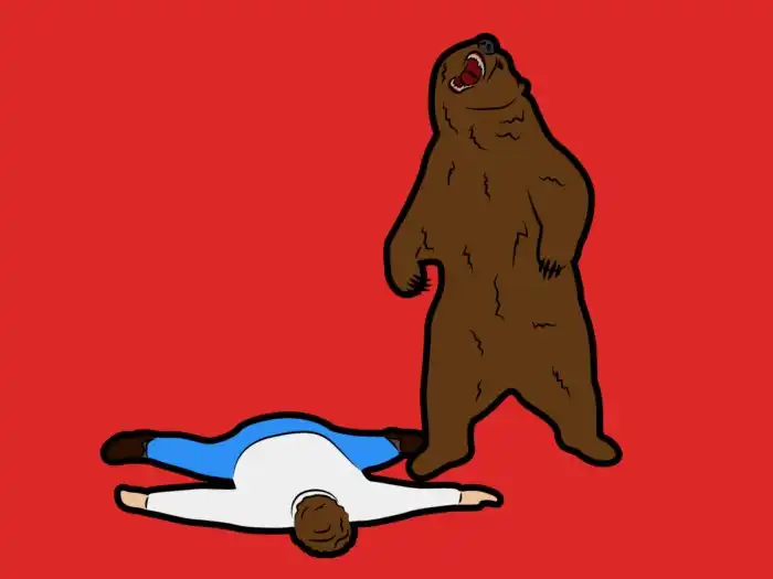 Но в случае, если медведь действительно нападает, ваше поведение должно зависеть от вида медведя и самого нападения. Никогда не притворяйтесь мертвым перед черным медведем (барибалом) — давайте ему отпор.