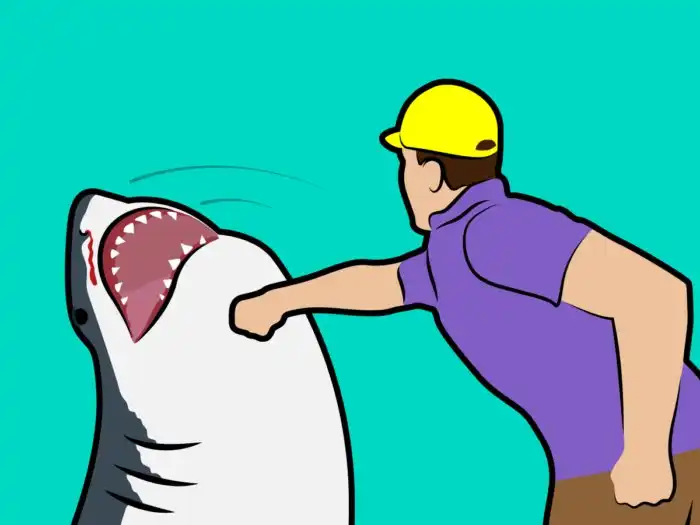В редких случаях, когда нападение все-таки происходит, старайтесь держать какой-нибудь твердый предмет между вами и акулой (например, маску или плавательную доску). Если под рукой ничего нет, старайтесь расцарапать акуле глаза и жабры.