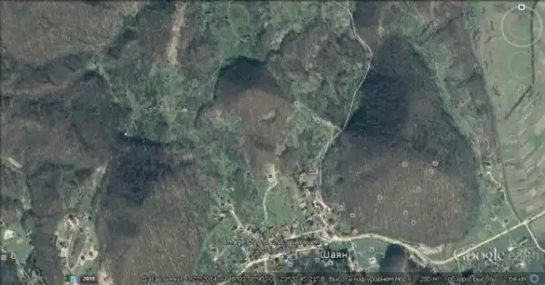 Рассмотреть гору сверху может любой желающий с помощью Google maps: