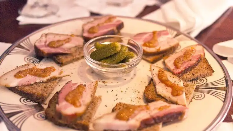 Что же итальянцы делают с этим салом дальше? Немало применений. Одно из лучших — положить тонкий ломтик сала на только что поджаренный с одной стороны кусок хлеба и дать ему подтаять. Ломтики сала кладут на бифштексы вместо сливочного масла. Нарезают на блюдце и посыпают грубой солью. В него заворачивают чернослив и кростини, едят с жареными грушами и мёдом. Известный мясник Дарио Чеккини взбивает сало до состояния шантильи, вот как.