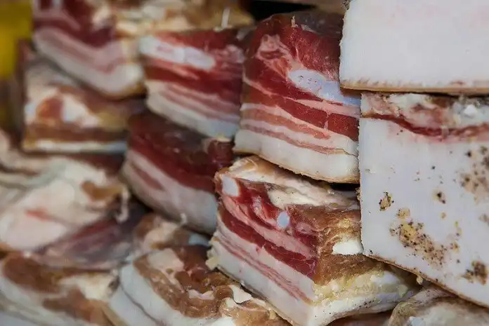 Работа на каменоломнях из разряда каторжных, так что неудивителен выбор сала в качестве энергетической поддержки. Сам процесс был не так прост. Ванны для засолки сала делались из одного специального сорта мрамора Каналони. Внутренность ванны тщательно мыли и смазывали чесноком. Сало укладывали крупными кусками, полосами, пересыпая слои морской солью, чесноком, розмарином, шалфеем, душицей, гвоздикой и семенами фенхеля.