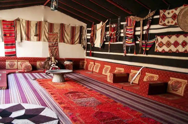 Будь это бедуинский шатер или современная квартира, но, входя в дом, обязательно следует разуться. Как правило, полы иорданских домов устланы коврами, и, какими бы ни были чистыми ваши ботинки, их лучше снять. В бедуинских же традиционных шатрах на полу лежат циновки, а сами гости располагаются полулежа на низких кушетках. Находиться здесь в обуви совершенно недопустимо.