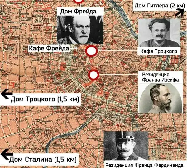Гитлер, Сталин, Троцкий, Тито и Фрейд одно время жили практически по соседству. В 1913 году в Вене они располагались в паре километров друг от друга и даже посещали одни и те же кофейни. Разобраться бы здесь детальнее…