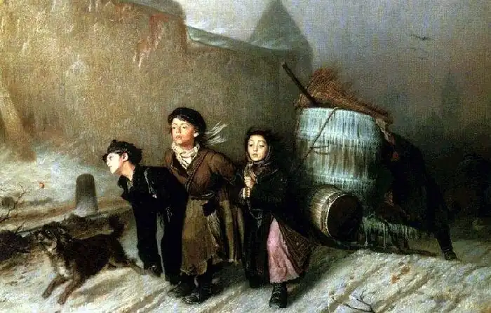 «Тройка (Ученики мастеровые везут воду)» - невероятно эмоциональное полотно, созданное русским художником Василием Перовым. Трое деток, запряженные в сани, обреченно тянут огромную бочку с водой. Очень часто картину приводят в пример, говоря о нелегкой крестьянской судьбе. Вот только создание этой картины стало настоящим горем для обычной деревенской женщины.