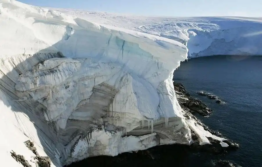 Не так давно британские учёные проанализировали 50 млн. спутниковых снимков антарктических ледовых щитов и пришли к выводу, что их таяние происходит очень стремительно. В особенности вызывает опасения гигантский ледник Тоттен, размером сопоставим с территорией Франции. Исследователи заметили, что его подмывают тёплые солёные воды, ускоряя его распад. По прогнозам этот ледник может поднять уровень Мирового океана на целых 2 метра. Предполагается, что и ледник Ларсен Б разрушится к 2020-му году. А ему, между прочим, целых 12 000 лет.