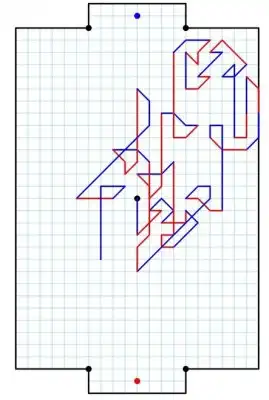 Игроки стартуют с двух точек рядом друг с другом внизу двойного листка, стоящего вертикально (см. рисунок).