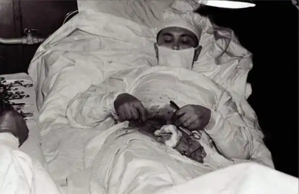 Когда 27-летний врач Леонид Рогозов был размещен в новой антарктической колонии, он слег с сильными болями и классическими симптомами аппендицита . Он знал, что единственным выходом для него была бы операция, но так как из-за метели транспорта не было, и он был единственным врачом на базе, ему пришлось оперировать самому.