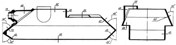 Надо заметить, что стены корпуса и рубки имели разные углы наклона, что способствовало рассеиванию кинетической энергии снарядов. Дополнительно сварные швы усиливались шпунтами и пазами. Корпус собирался из стальных прокатанных гетерогенных плит, а его масса составляла 17 тонн.