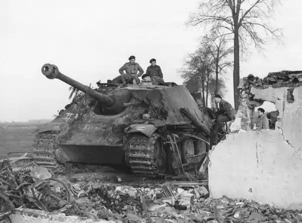 Немецкая САУ «Ягдпантера» (Sd.Kfz.173 Jagdpanther) 559-го батальона истребителей танков, подбитая частями 1-й польской танковой дивизии у Раамсдонка, Нидерланды.