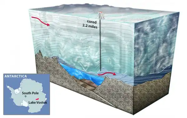 Антарктида практически полностью накрыта мощным ледяным куполом, толщина которого в отдельных районах достигает четырех тысяч метров. Разумеется, такая «шапка» объемом в десятки миллионов кубических километров копилась очень долго, благодаря чему сейчас континент представляет собой уникальное естественное хранилище климатической истории Земли. Первые попытки бурения этого щита на станции «Восток» были связаны как раз с палеоклиматическими исследованиями. В общей сложности между поверхностью ледника и озером заморожены 400 000 лет истории Земли, ценнейшая информация о погодных изменениях на планете.
