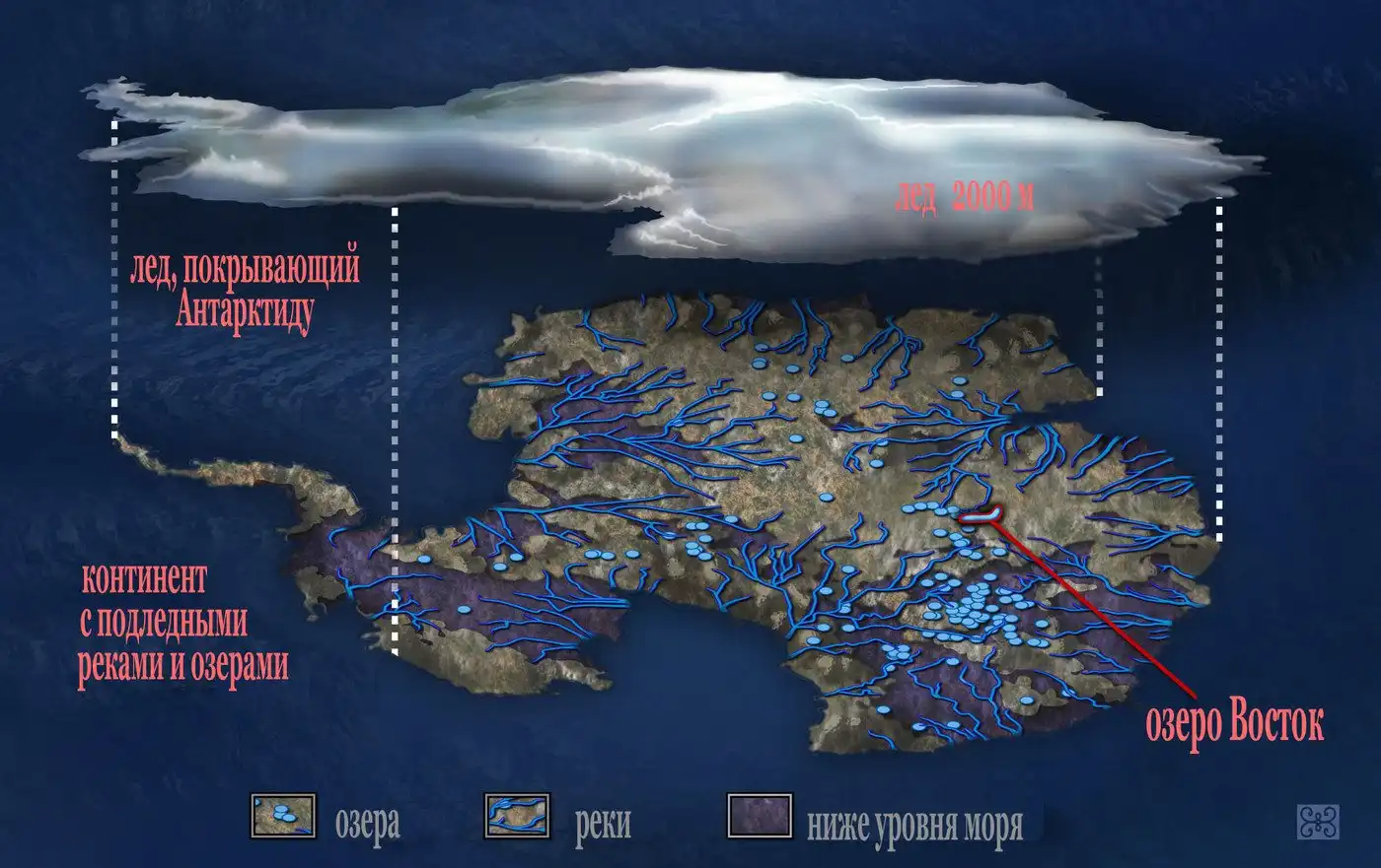 В 1970-е годы британские (в хорошем смысле) ученые, выполняя программу полетов над Антарктидой и радиозондирования ее ледяного массива, вновь заметили странные аномалии. В некоторых местах радиоволны свидетельствовали о наличии подо льдом крупных скоплений чего-то похожего на воду. Окончательно гипотезы о существовании подледных озер были подтверждены в начале 1990-х с помощью спутниковых данных. Статьи в научных журналах и доклады на конгрессах стали в те годы настоящей сенсацией: в мертвом царстве льда и мороза, убивающего все вокруг, существовал мир, где жизнь была теоретически возможна.