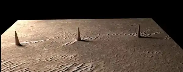 Марс продолжает преподносить сюрпризы. На этот раз испанский уфолог обнаружил в районе экватора на плато Меридиана шесть высоких конусообразных башен и в программе объемного проектирования сделал их модели.