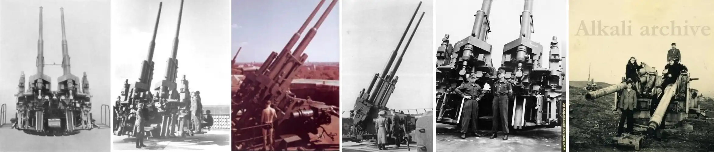 Гигантомания, свойственная германской конструкторской школе в 30-ые — 40-ые годы, в полной мере сказалась и на разработке зенитного оружия. Причиной тому послужили уже неоднократно упоминавшиеся сокрушительные налеты союзной авиации, бомбившей города и промышленные объекты рейха с высоты около 10000 метров. Для борьбы с воздушным противником конструировались все новые средства. Не была обойдена вниманием и старая добрая зенитная артиллерия. Несмотря на появление все новых крупнокалиберных зениток — вначале 88-мм, затем 105-мм и, наконец, 128-мм, — немцы искали возможности еще большего увеличения мощности снаряда и увеличения досягаемости по высоте. В начале 1938 года были созданы опытные образцы 150-мм орудий, за которыми в 1941-м последовали пушки, имевшие калибр 240 мм! Речь идет о так называемых «изделии 80» (Geraet 80) фирмы «Krupp» и «изделии 85», изготовленном «Rheinmetall-Borsig». Оба варианта орудия весили около 30 тонн. Крупповская зенитка использовала 200-килограммовый снаряд, орудие фирмы «Рейнметалл» — 180-килограммовый. Досягаемость по высоте достигла 18 км, а скорострельность — 7 в/мин. Несмотря на хорошие характеристики, разработчики столкнулись с рядом трудноразрешимых сложностей технического характера, основная масса которых упиралась в необходимость создания надежной системы заряжания. В конечном счете, в октябре 1943 года разработка 240-мм зенитных орудий была прекращена.
