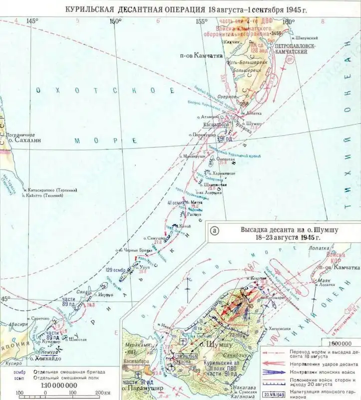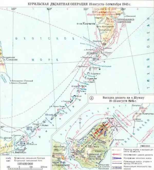 Карта Курильской операции и высадки на Шумшу